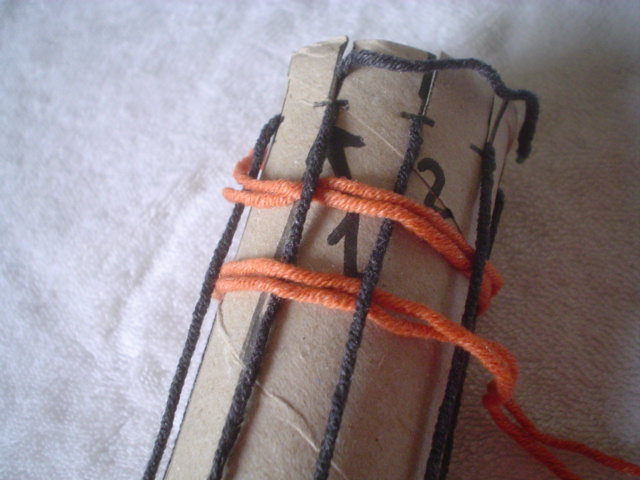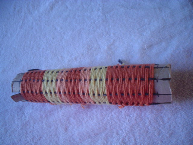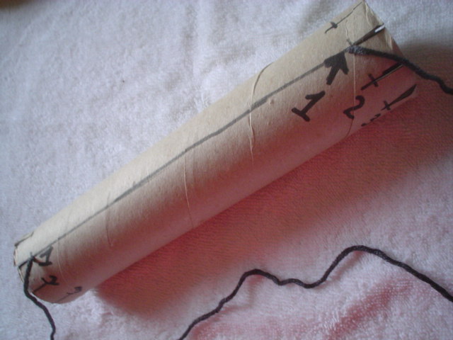 Then lift the warp yarn out from the notches on the other side of the tube.