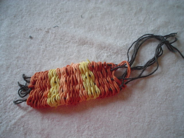 here you see that in the first row of weaving the brown weft yarn passed under the black