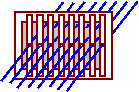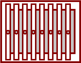 And here is a drawing of the uneven warp threads in their slots.