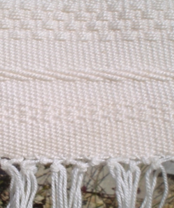 To give this weave pattern a different look you use coloured yarns and different types of yarn, for easy effect.