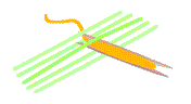 | Then you push the shuttle along a bit, to the next warp thread.